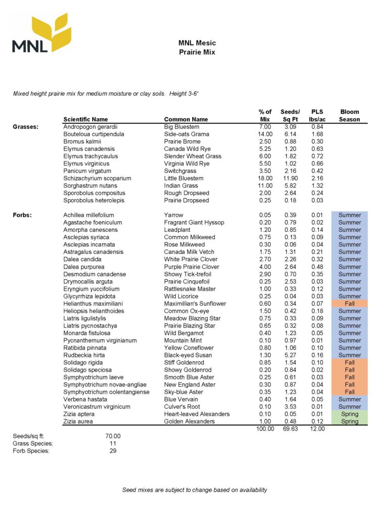Native Seed Packet - Mesic Tallgrass Prairie Mix